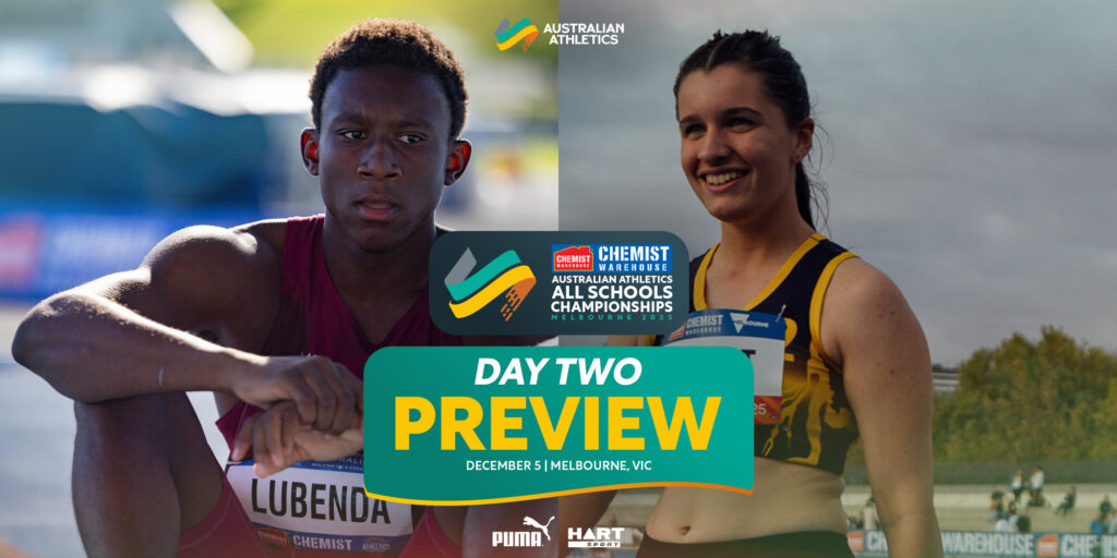 Day Two of the Chemist Warehouse Australian Athletics All Schools Championships begins tomorrow at 9am AEDT, and can be watched live and free from 10am via the Sideline Sport Platform.