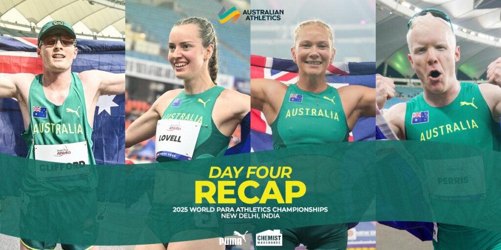 Earlier in the day, the tone was set by Jaryd Clifford (VIC, Philo Saunders, T12) who raced to bronze in the 1500m T13, returning to the global podium in a tactical affair that saw him clock 3:58.87 – the medal positions coming down to a 54-second final lap.