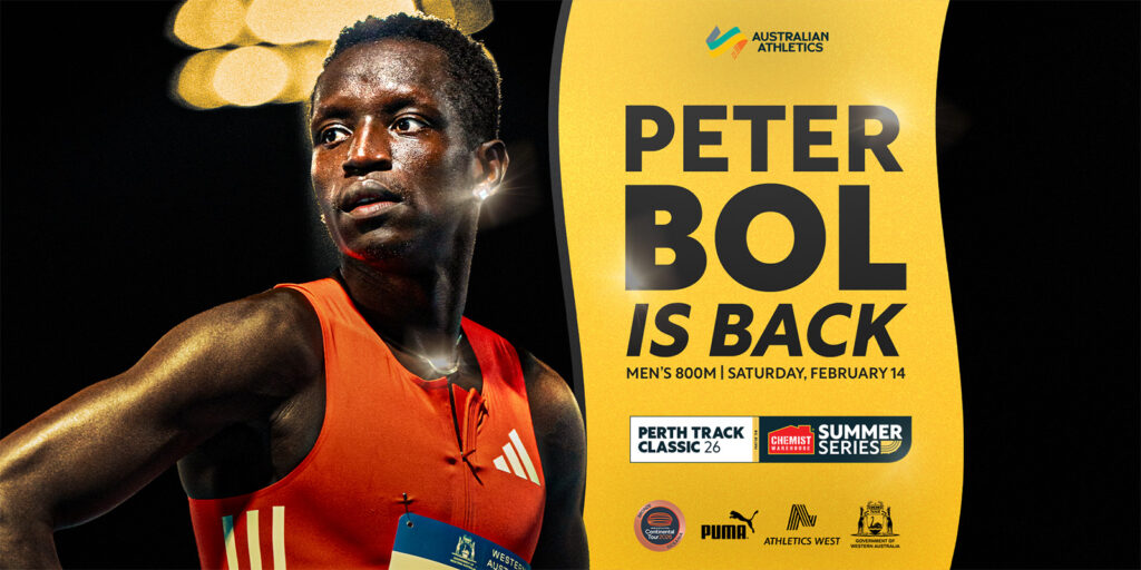 The wild west awaits for Olympic finalist Peter Bol who has confirmed his start at next month’s Perth Track Classic, igniting his 2026 campaign at the WA Athletics Stadium where he reclaimed the Australian record last April.