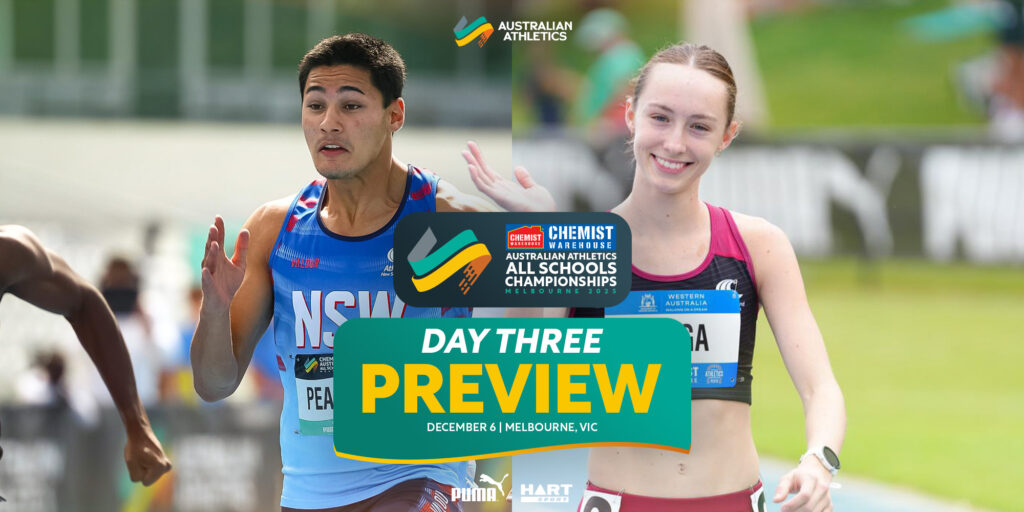 Day Three of the Chemist Warehouse Australian Athletics All Schools Championships begins today at 9am AEDT and can be watched live from 10am AEDT via the Sideline Sport Platform.