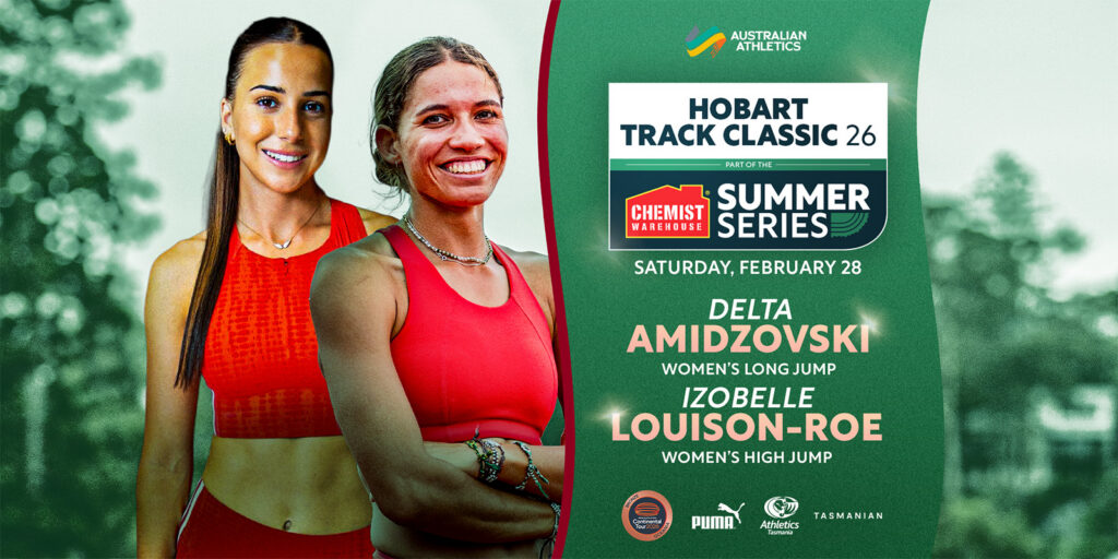 Two of Australia’s top teenage talents are leaping into the return of the Hobart Track Classic on February 28, with World Under 20 long jump champion Delta Amidzovski and high jumper Izobelle Louison-Roe leading a rising crop of new-look stars.